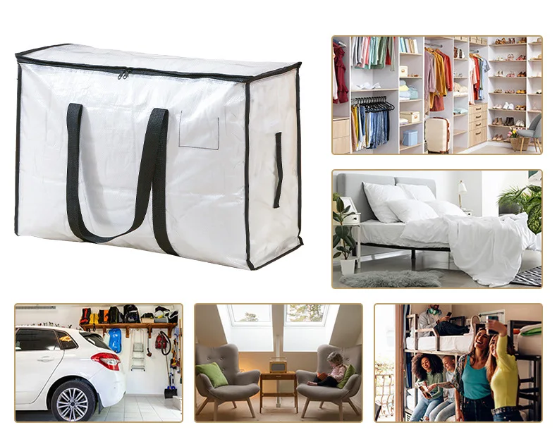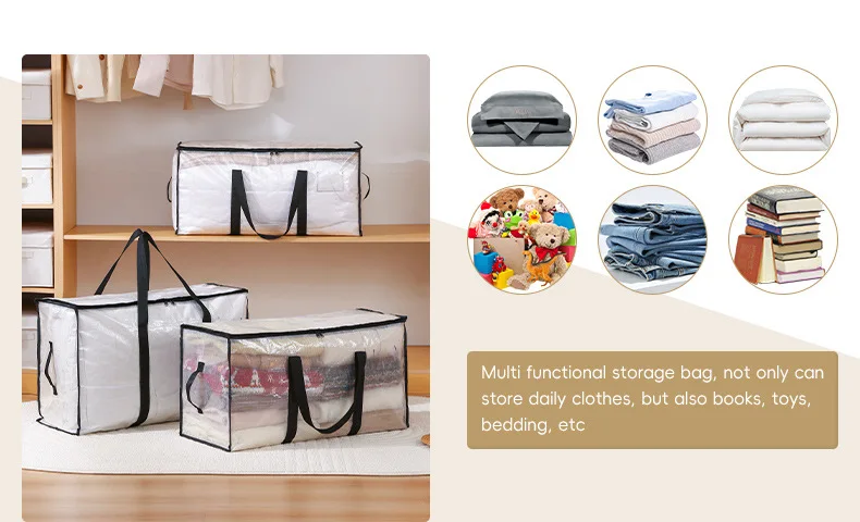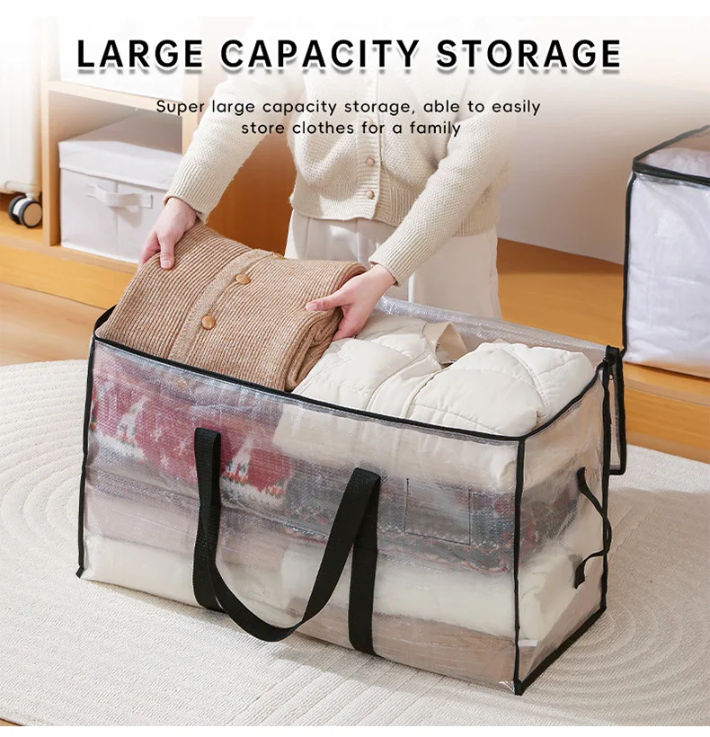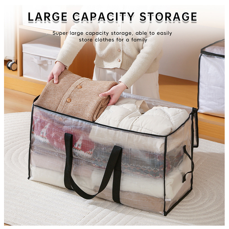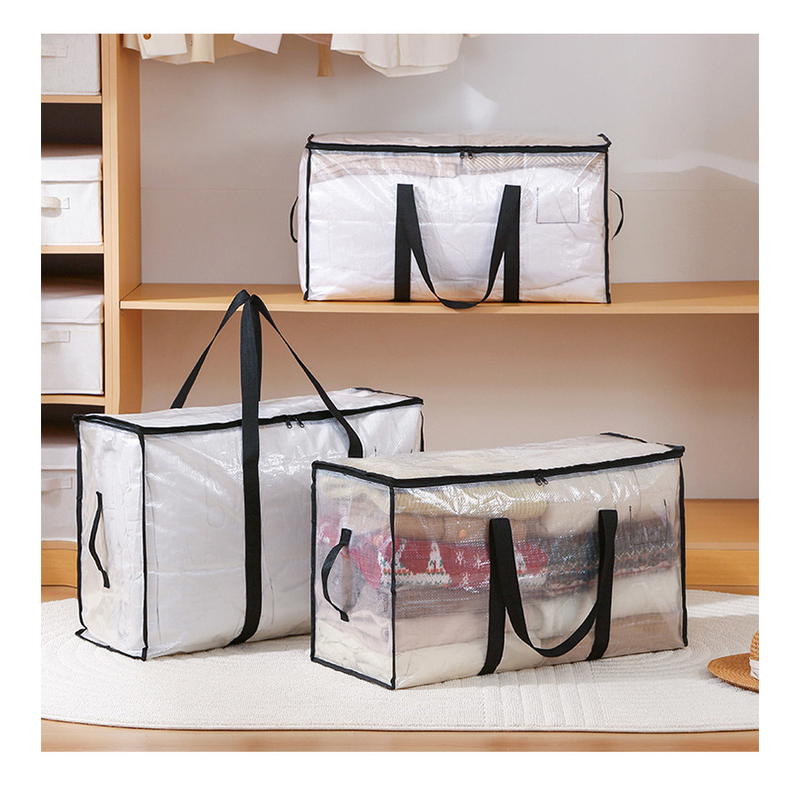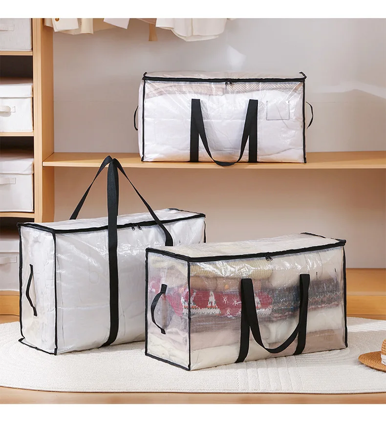 Transparent large capacity woven storage bag,quilted storage bag,closet type waterproof double zipper portable clothing storage