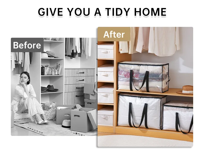 Large opening design, seasonal clothing, cotton-padded clothes, down jackets, quilts and other large items can be easily stored in one bag.