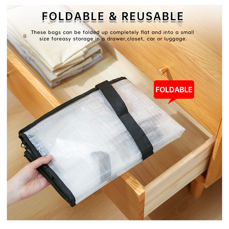 This translucent PP woven bag is made of PP material, which is soft and foldable, waterproof and moisture-proof, dirt-resistant and easy to clean, and can protect clothes from insects and dust.