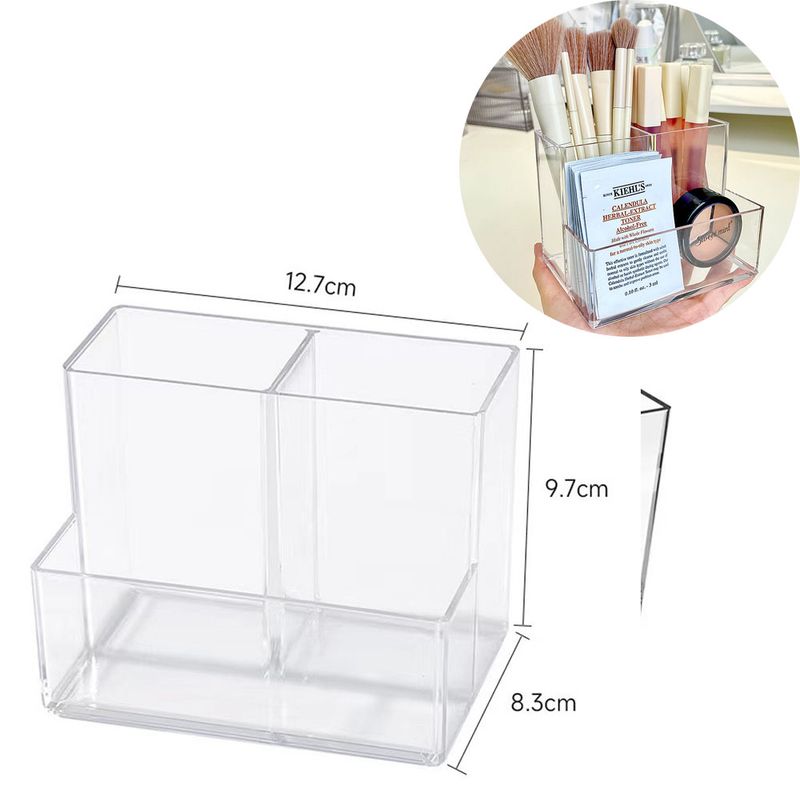 Eyebrow pencils,lipsticks,false eyelashes,makeup brushes,jewelry,necklaces,earrings,there are too many bottles and jars of cosmetics and accessories,which are messy on the table. Try the acrylic cosmetic storage box we prepared for you. All the cosmetics are grouped together,neat and clean,allowing you to quickly find what you want.