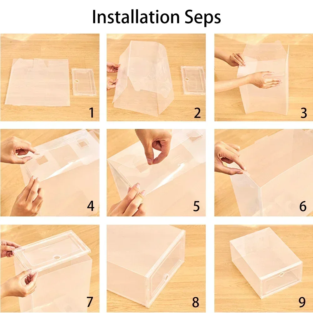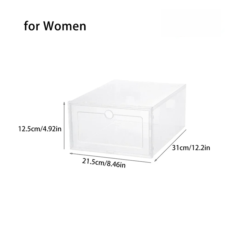 1. Transparent shoe storage box, free stacking, stable and strong weighing capacity.