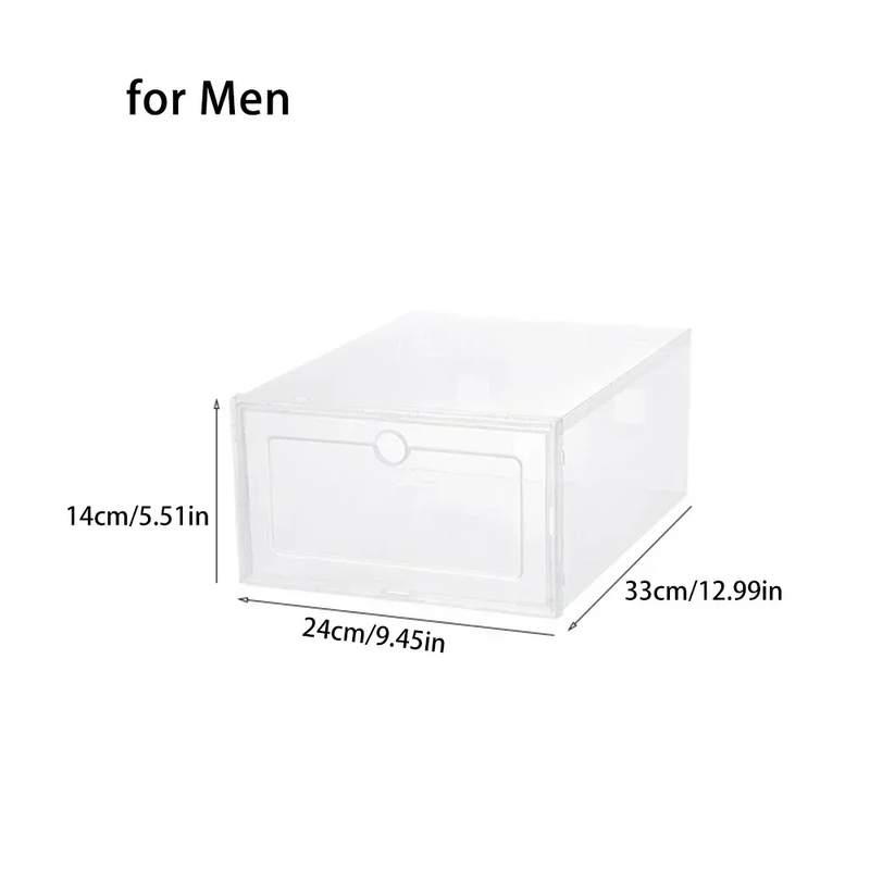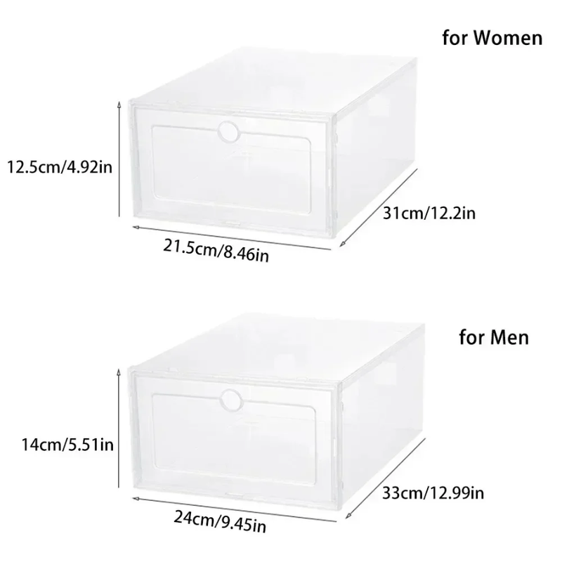 1. Transparent shoe storage box, free stacking, stable and strong weighing capacity.
