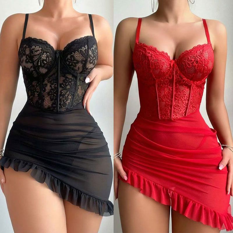 Transparent Underwire Bra Erotic Set Sexy Fairy Lingerie Women's See Through Lace Nightdress Pajamas Sets Delicate Sexy Nighty