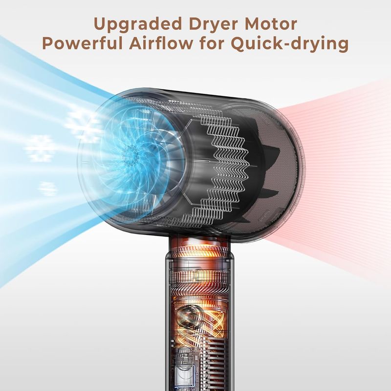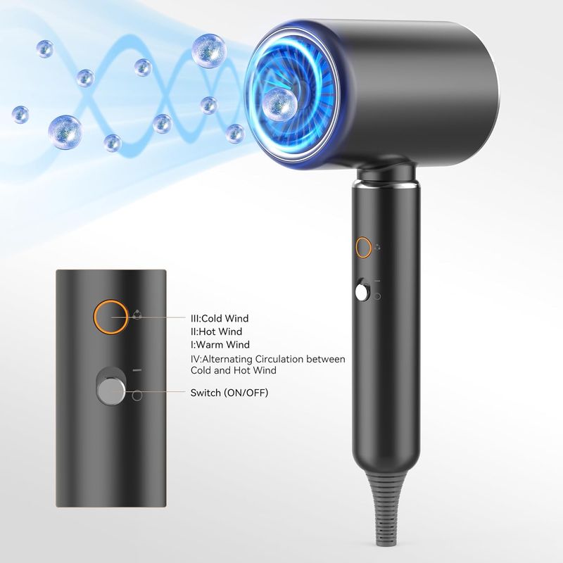 【Powerful Airflow for Quick Drying】Featuring a robust 2200W AC motor, this compact travel hair dryer ensures fast and efficient drying effect with powerful airflow, and drying your hair quickly through powerful airflow rather than high heat, provides with a healthier drying way for your hair.