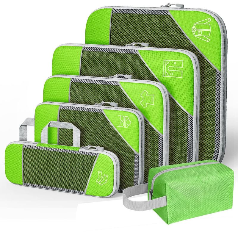 Travel Storage Bag Suit Luggage Organizing Portable With Net Compression Portable Green Six piece Wash Bag