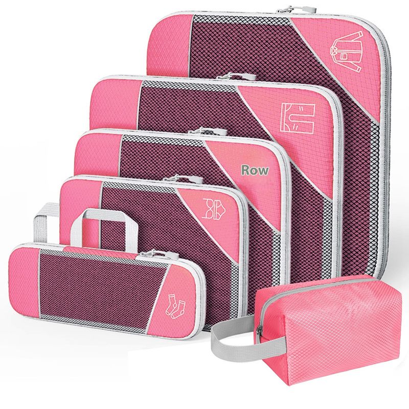 Travel Storage Bag Suit Luggage Organizing Portable With Net Compression Portable Pink Six piece Wash Bag