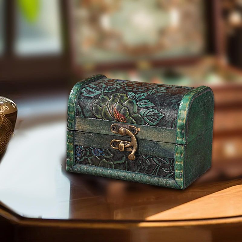 【Application】: A wooden treasure chest is ideal for storage of small collections, as decoration for a dresser, desk, home, display jewelry, wedding centerpieces, etc.