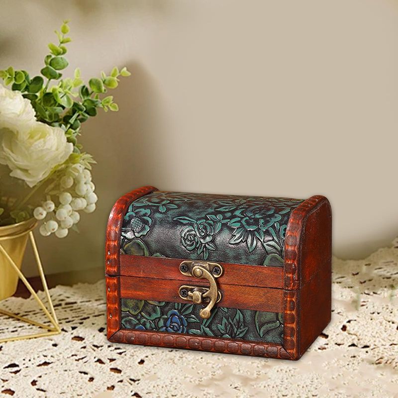 Treasure Chest Trinket Box Case Decorative Storage Box Wooden Jewelry Box Organizer for Birthday Charms Rings Girl Girlfriend
