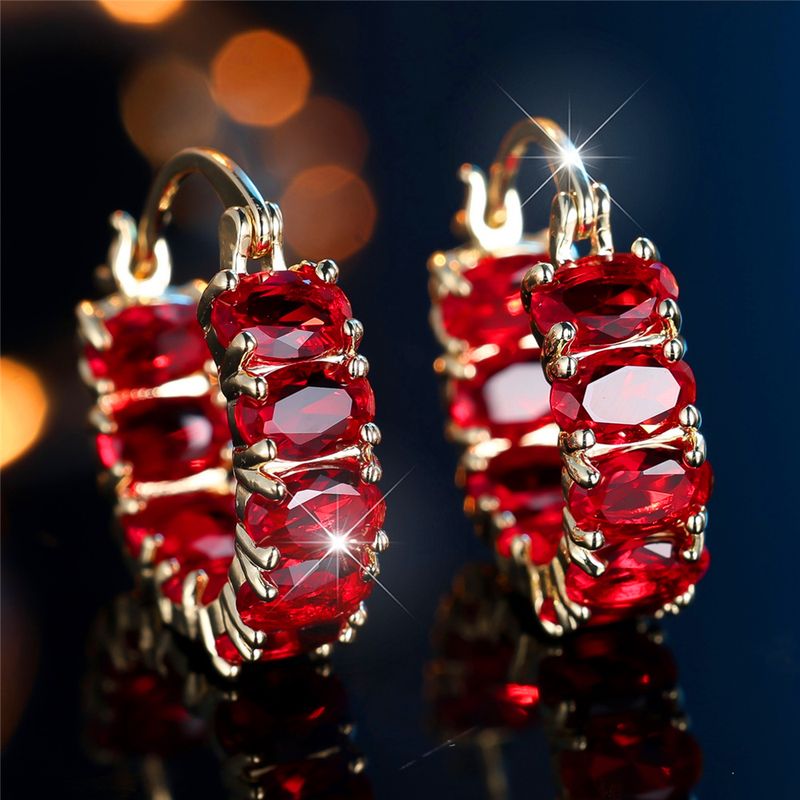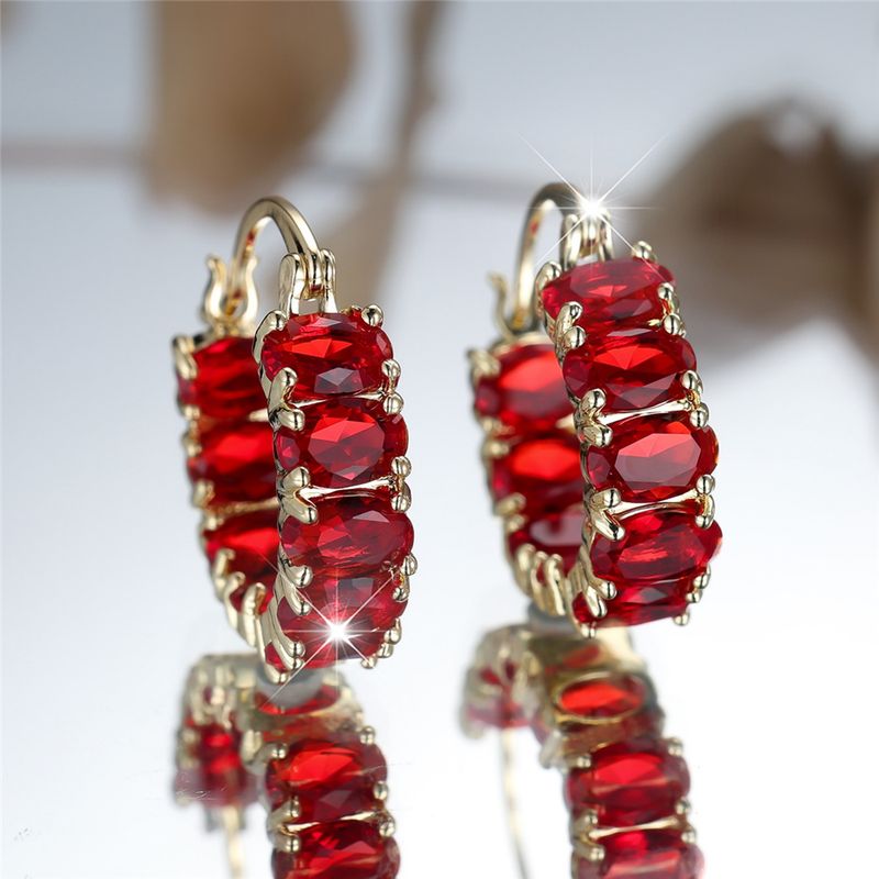 Trendy Crystal Red Zircon Stone Hoop Earrings For Women Vintage Gold Color Wedding Jewelry