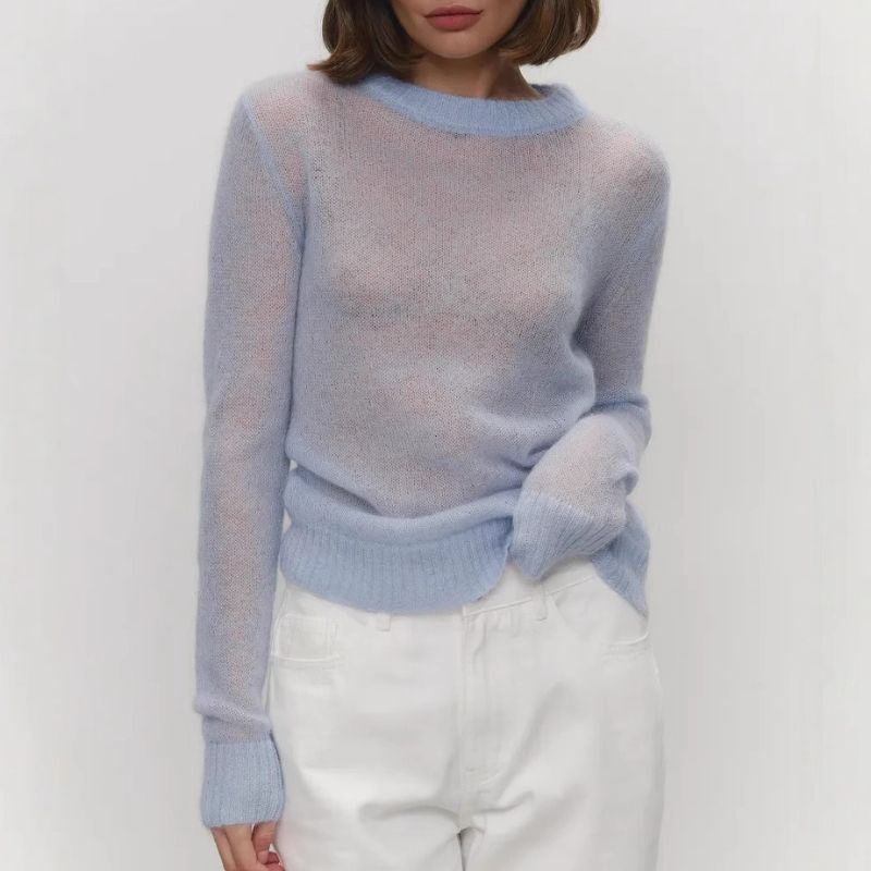 trendy Knit Sweater Women's Long Sleeves O-Neck Pullover Sweater Lady Loose See Through Top Solid Casual tops women clothing