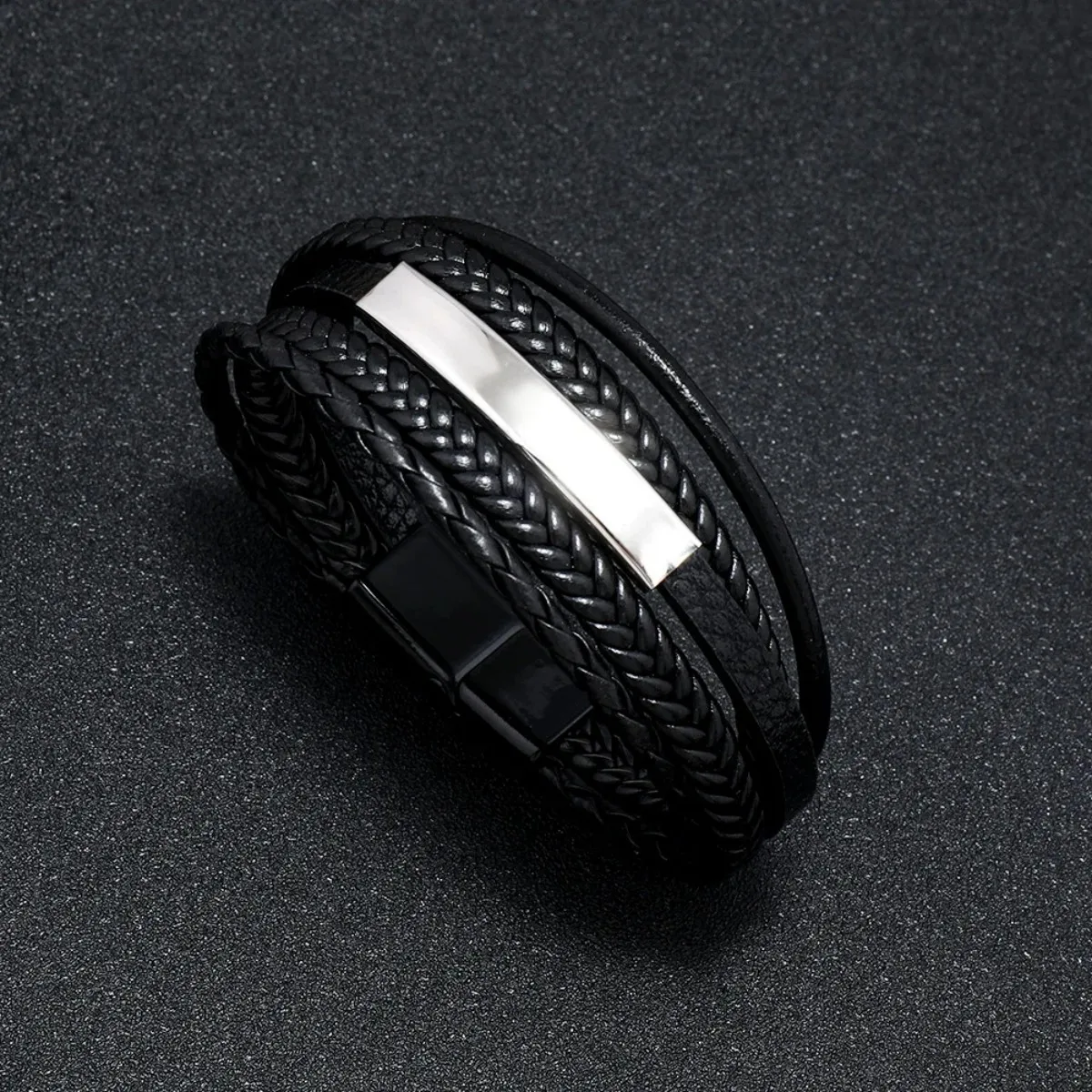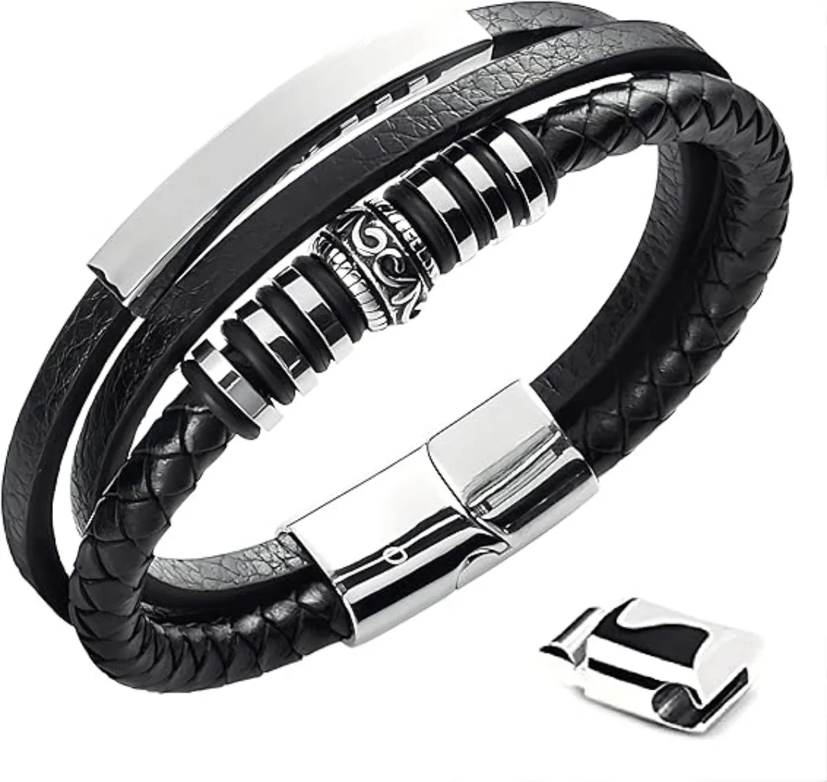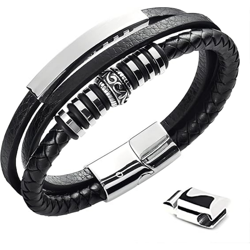 Estilo: la pulsera de cuero negro para hombre es el accesorio ideal para completar cualquier atuendo. Su elegante diseño con el cuero trenzado lo hace adecuado para cualquier ocasión y definitivamente llama la atención