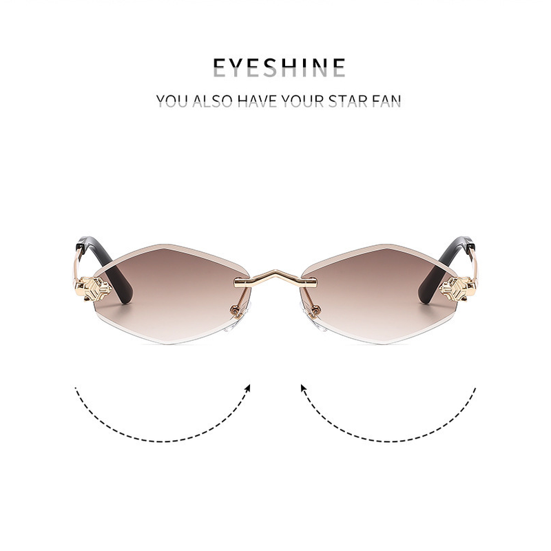 Trendy Rimless Polygonal Sunglasses Stylish Gradient Lens Metal Shades Eyewear Luxury Brand Small Rhombus Vintage Sun Glasses