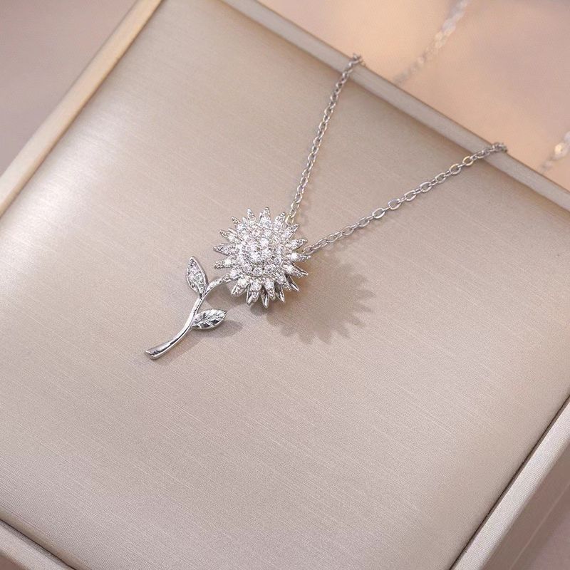 Trendy Rotation Spin Sunflower Stainless Steel Zircon Necklaces For Women Metal Crystal Necklace Party Birthday Gifts Jewelry