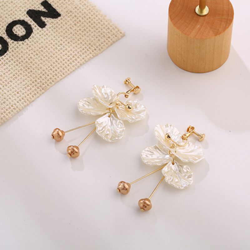 Trendy Temperament Long Pearls No Hole Clip Earrings Imitation Pearl Shell Tassel Long Clip on Earrings on Pierced Ears Women