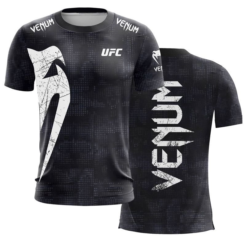 Trendy UFC Men’s Black White T-shirt Summer Casual O-neck Short Sleeve 3D Print Top for Boxing Fitness Training