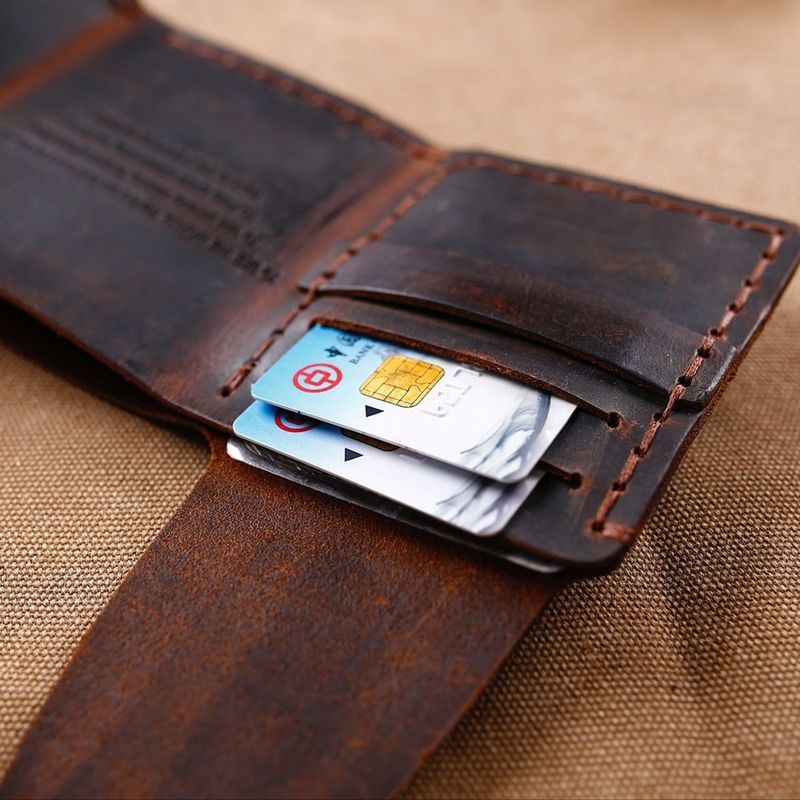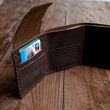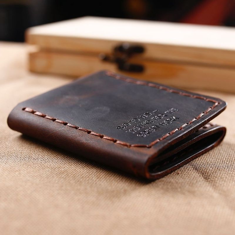 Tri-fold personalized retro wallet Dark brown c