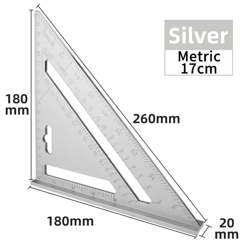 Triangle Ruler 7Inch Measurement Tool Aluminium Alloy Carpenter Set Square Angle Woodworking Tools Try Square Triangular Metric