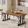 Rustic Industrial Style: Blend cozy farmhouse vibes with modern flair—this 71" rectangular kitchen table features a warm wood grain top and eye-catching geometric metal legs for a statement piece in any kitchen or dining room