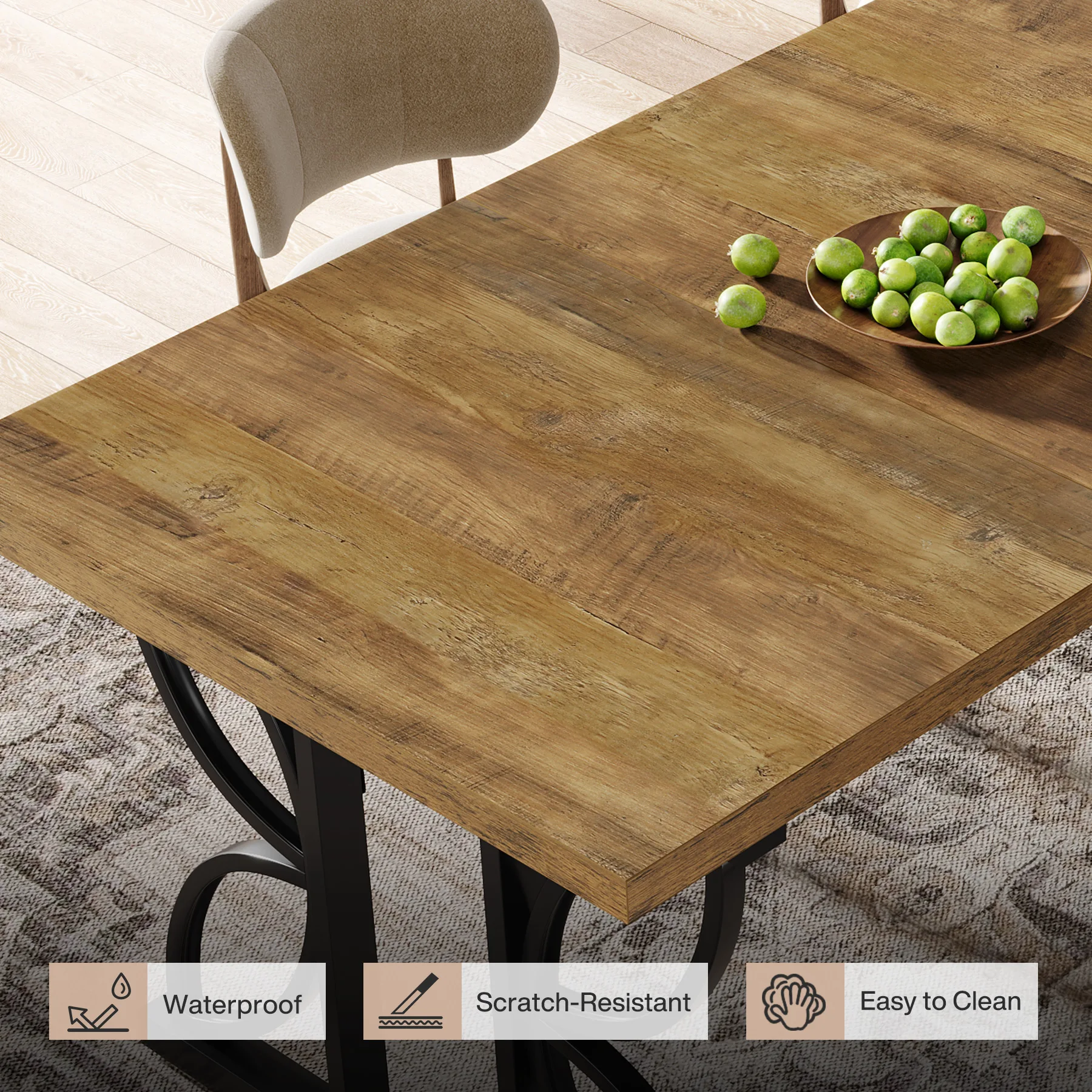Built to Last: Crafted with premium MDF, curved metal legs, and a 1.57" x 1.57" heavy-duty metal frame, this dining table offers exceptional stability. Extra metal connectors reinforce strength for everyday use and lasting durability
