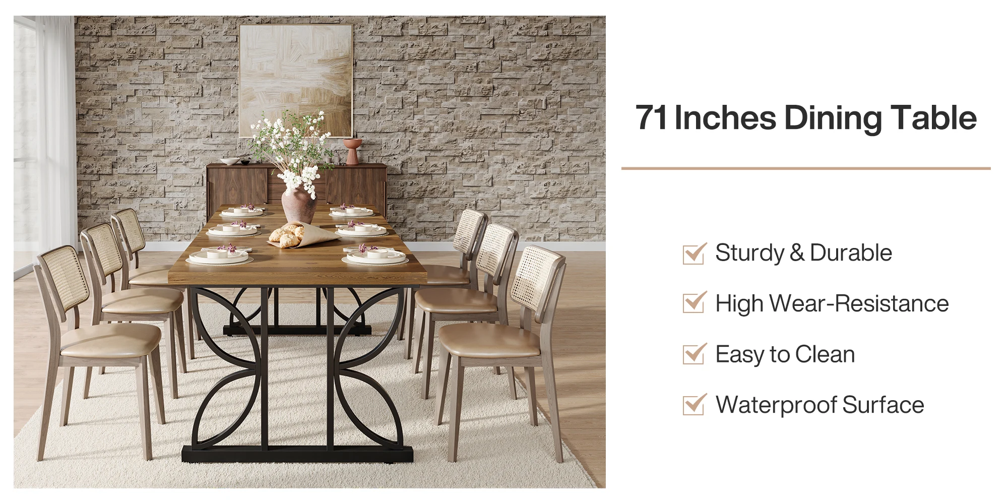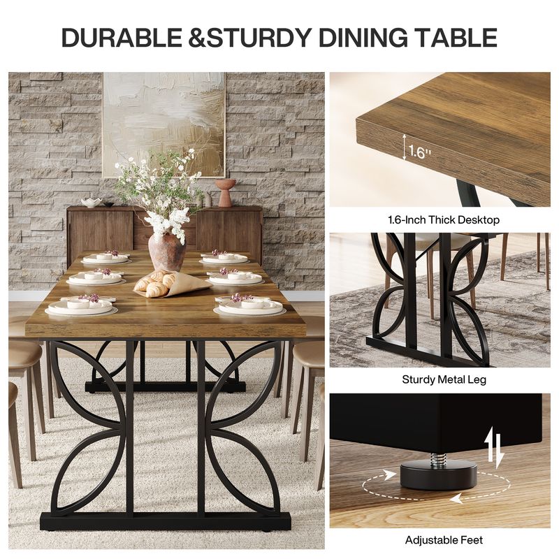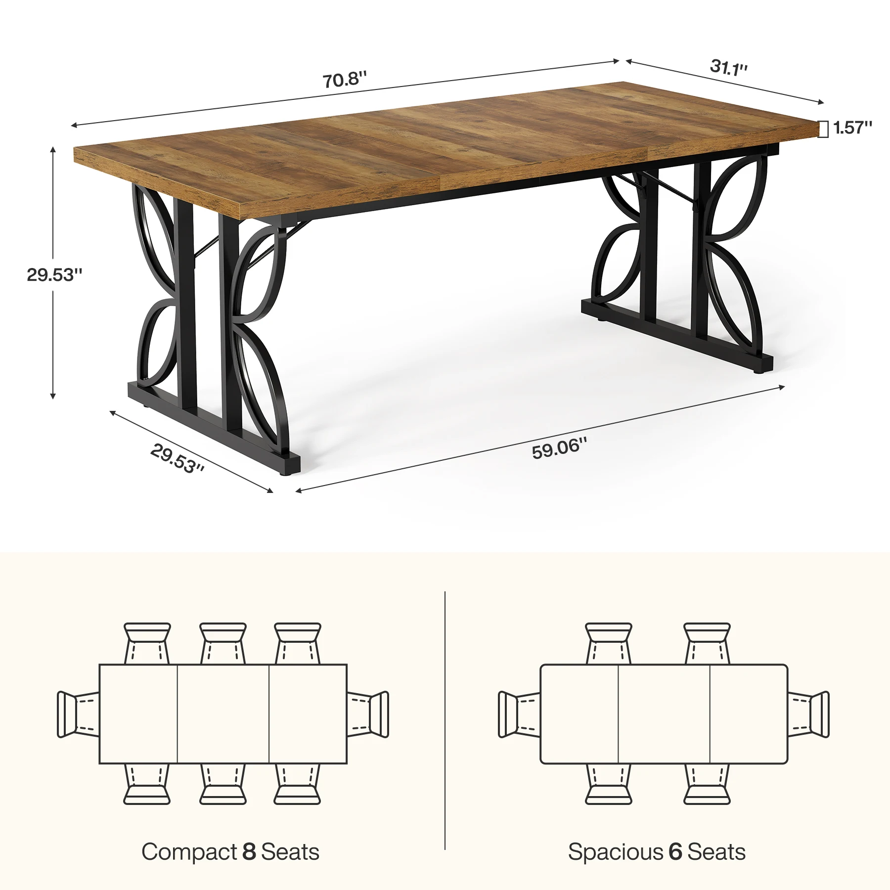 Spacious Seating: Gather everyone around! The spacious 71" L x 31.5" W dining table easily fits 6–8 people—ideal for family dinners, holiday meals, or laid-back brunches with friends. Standard 29.5" height keeps things comfy