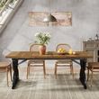 Rustic Industrial Style: Blend cozy farmhouse vibes with modern flair—this 71" rectangular kitchen table features a warm wood grain top and eye-catching geometric metal legs for a statement piece in any kitchen or dining room