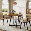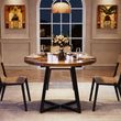Rustic-Chic Design: This round dining table is inspired by industrial aesthetics, combining vintage brown wood panels with a black metal frame. This timeless piece blends seamlessly with a variety of interior themes, from modern to rustic, making it an ideal centerpiece for any room.