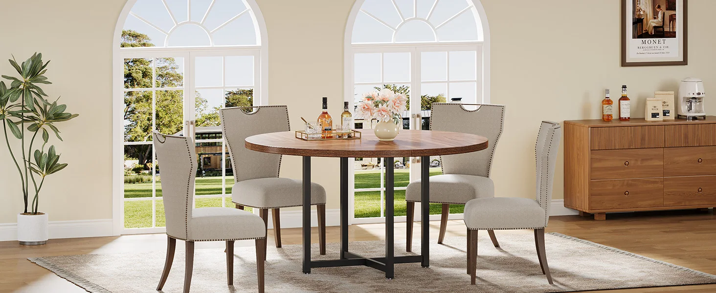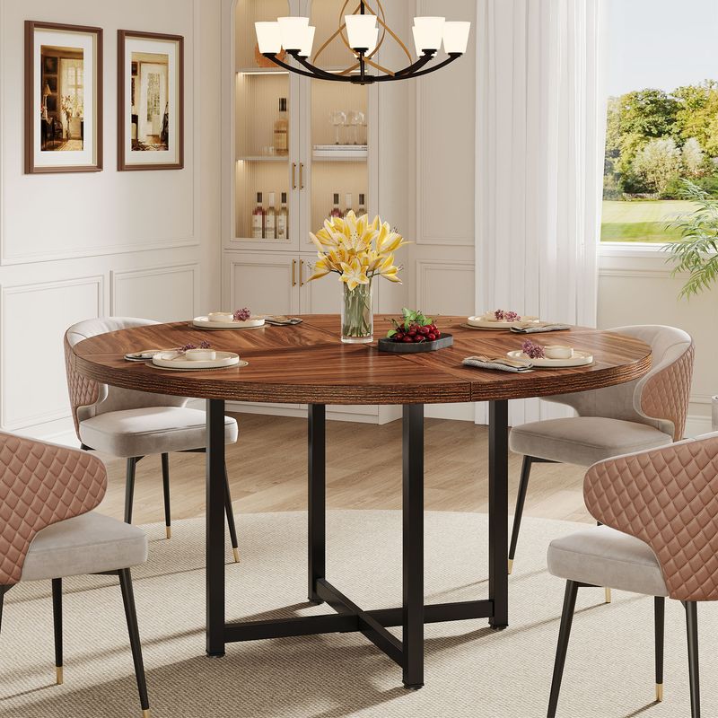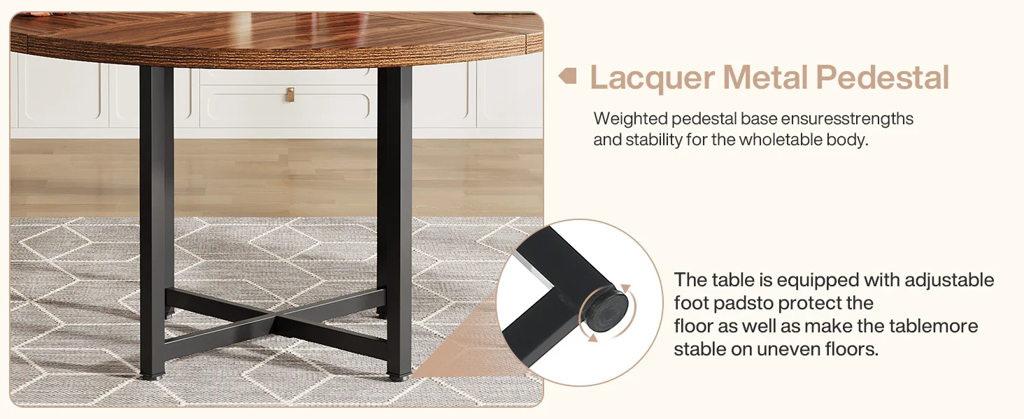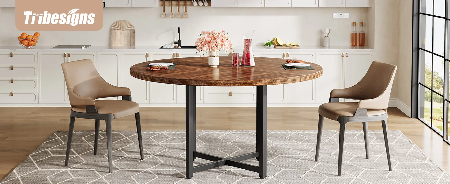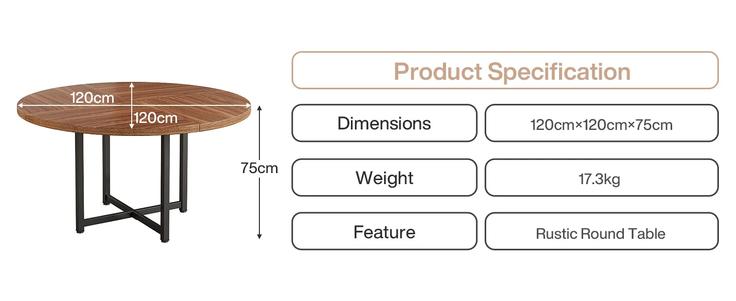1. Stylish Farmhouse-Industrial Design Enhance your dining space with a 47-inch (120cm) round table blending rustic charm and modern industrial aesthetics. The two-tone black & brown finish complements both contemporary and traditional interiors.