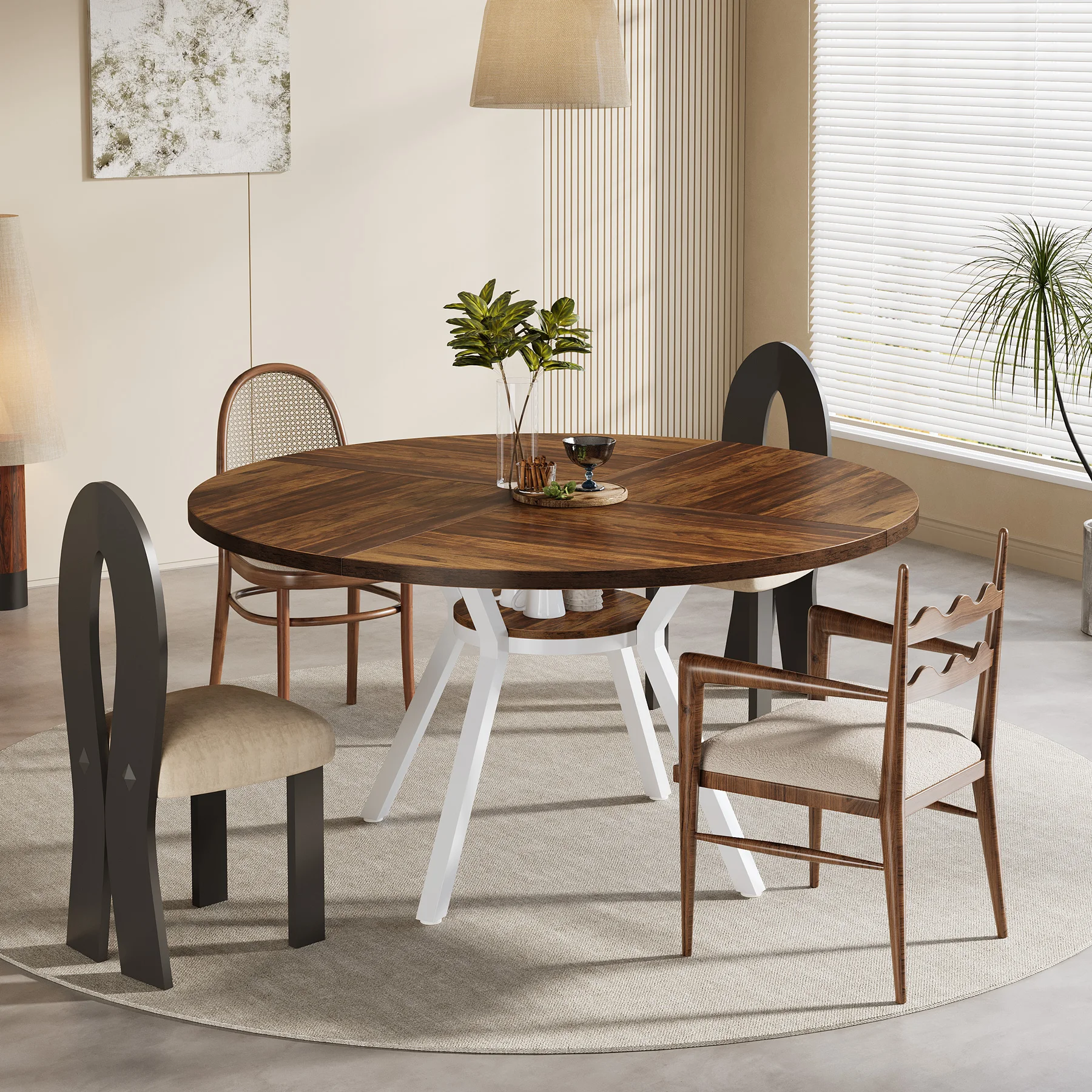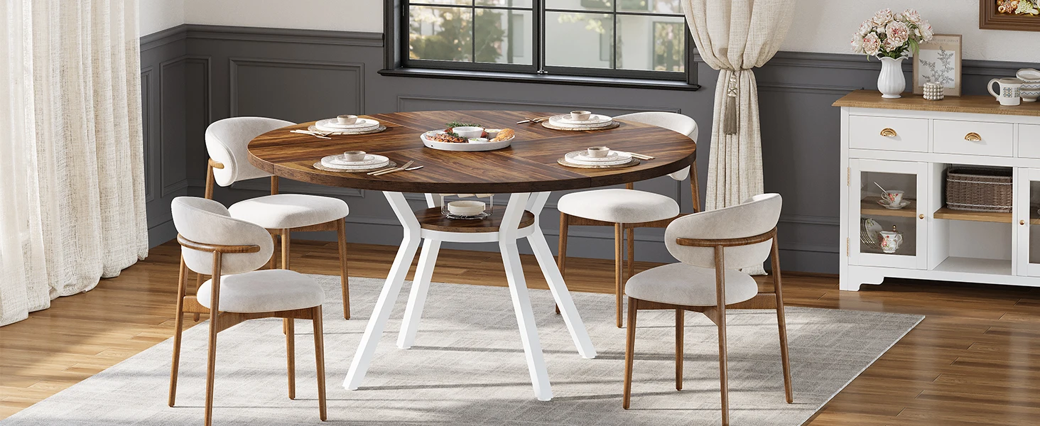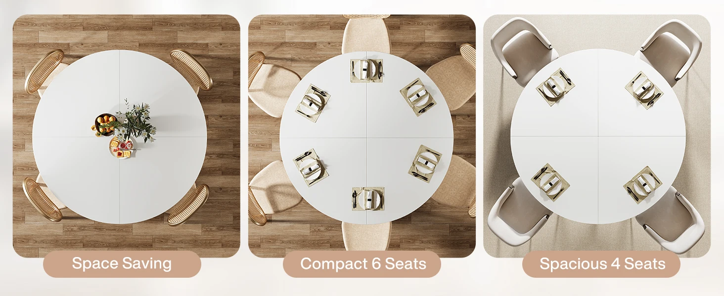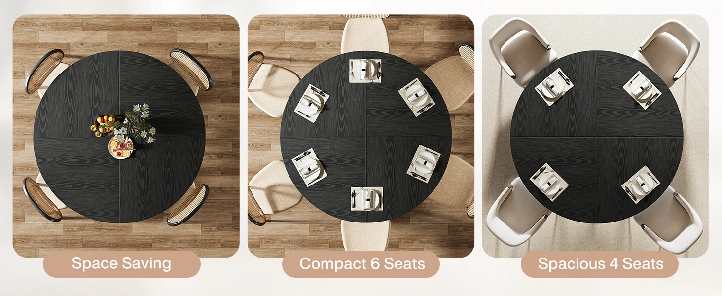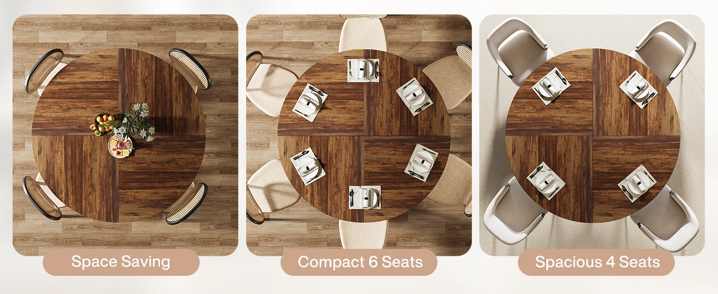 With an ideal size, the round dining table for 4-6 people ensures a perfect setting for those delicious meals, lively conversations, and unforgettable moments