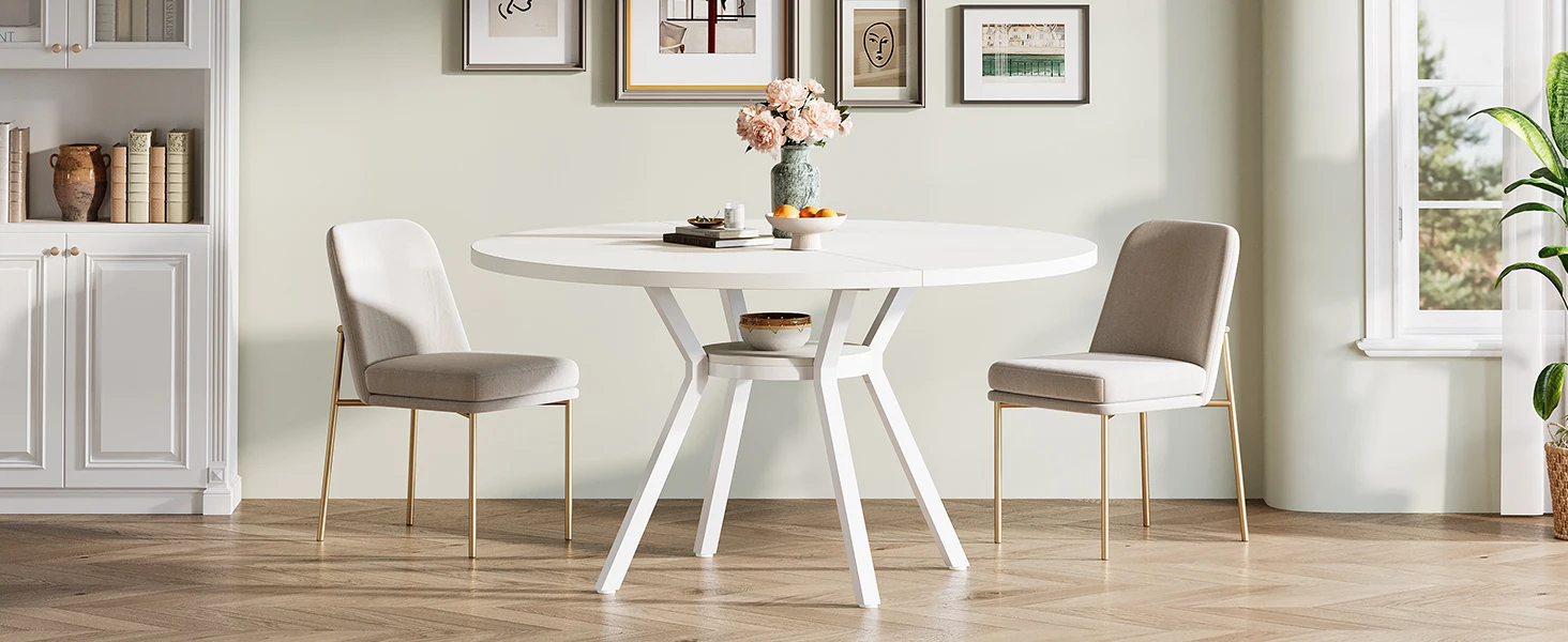 The small white dining table fits seamlessly into any decor scheme, suitable for your kitchen, dining room, apartment, reception room or other limited spaces