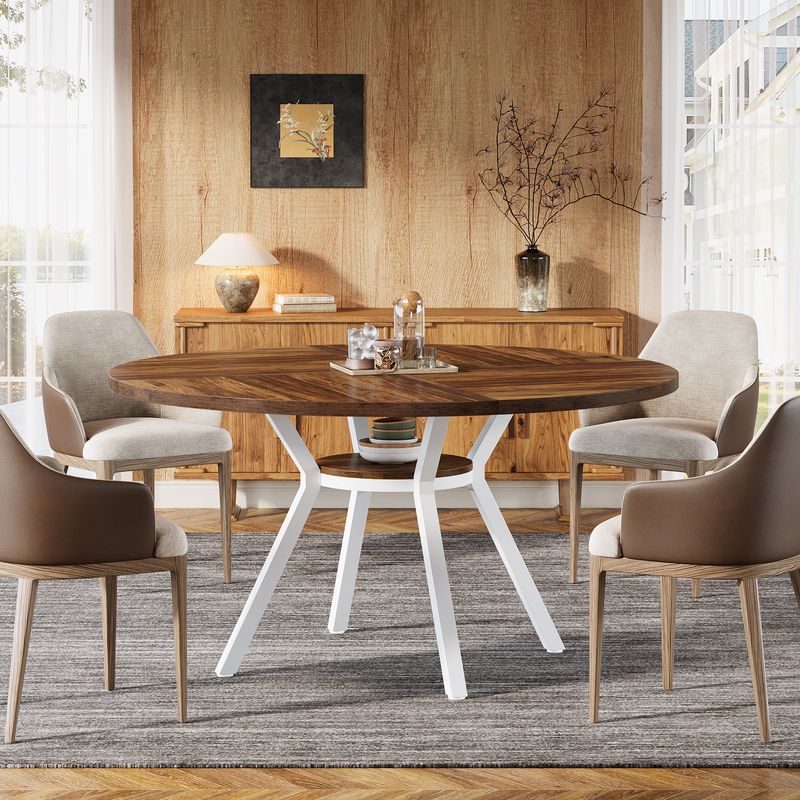 Tribesigns Dining Table for 4-6, 120cm Round Kitchen Table with Storage, Wooden Circle Dinner Table with Metal Legs