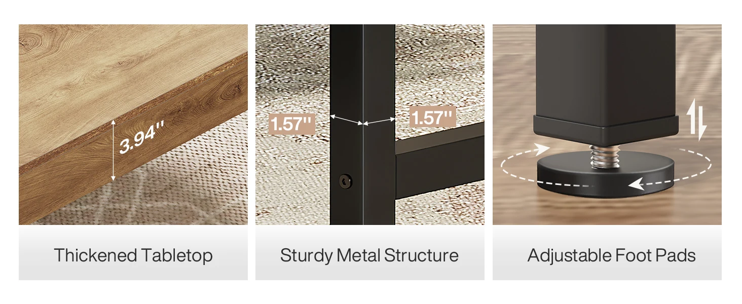 • Solid Construction: Unlike ordinary dining room tables, this dinner table features a 3.93-inch thick MDF tabletop and sturdy metal legs, built to keep long-term use and ensure lasting durability. Also, adjustable foot pads keep it stable on uneven floors