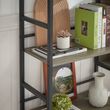 Featuring 14 spacious display shelves for space utilization and a back rail design to prevent items from falling through the cracks.