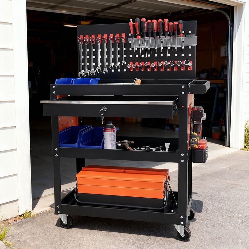 Trolley 3-layer Multifunction Tool Cart Loading 300kg Tool Cart With Drawer & Pegboard for Industry Garage Trolley 구르마
