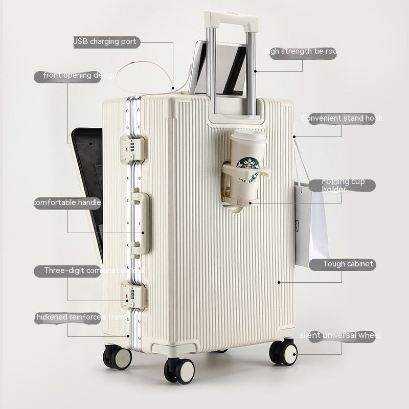 Trolley Aluminum Frame Large Capacity Front Opening Luggage Dark Gray 20 Inches