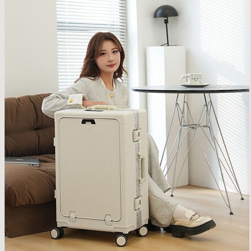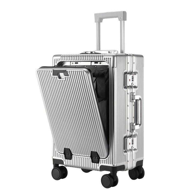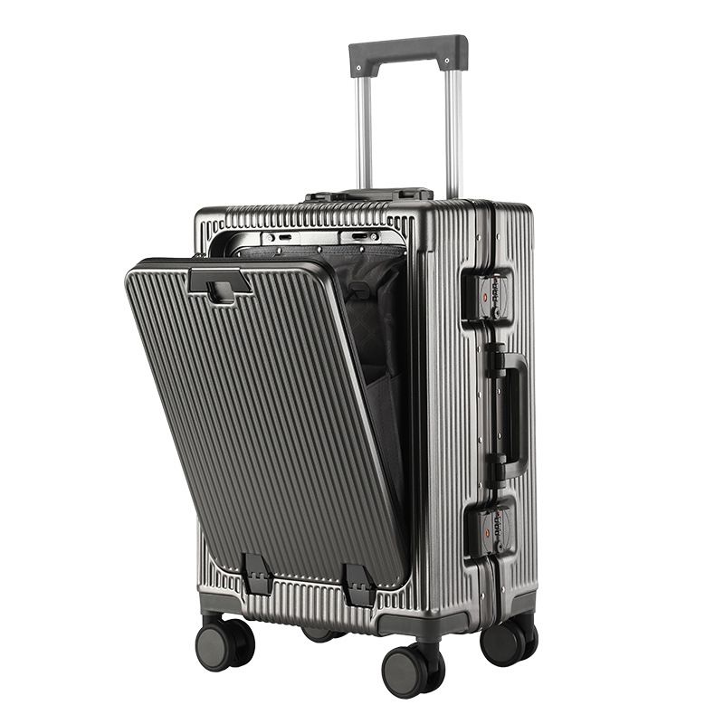 Trolley Aluminum Frame Large Capacity Front Opening Luggage Light Gray 24 Inches