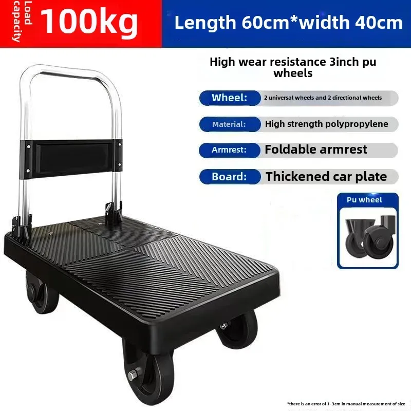 Trolley Folding Pull Goods Small Pull Truck Warehouse Trailer Portable Trolley Universal Silent Trolley Handling Flatbed Truck