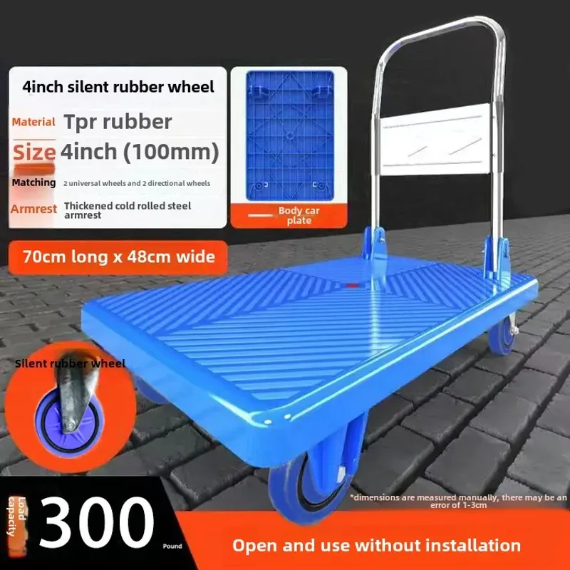 Trolley Folding Pull Goods Small Pull Truck Warehouse Trailer Portable Trolley Universal Silent Trolley Handling Flatbed Truck
