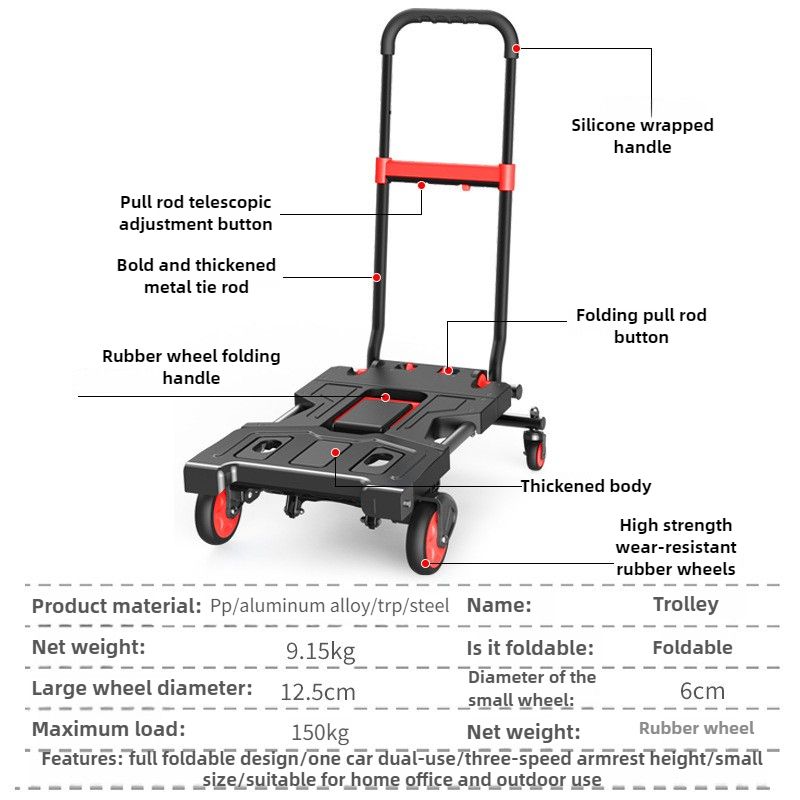 Trolley Multifunctional Outdoor Camping Folding Supermarket Replenishment Portable Folding Cart Camping Light Shopping Cart
