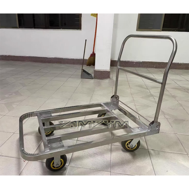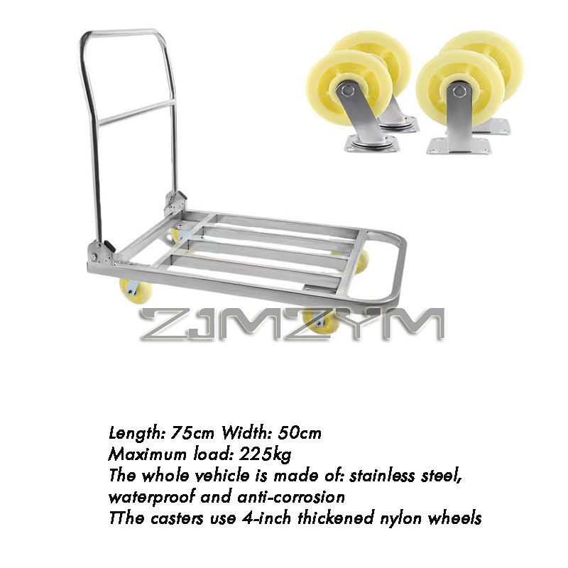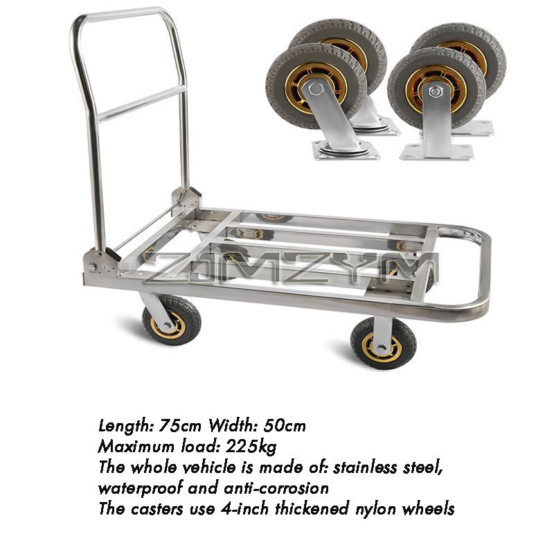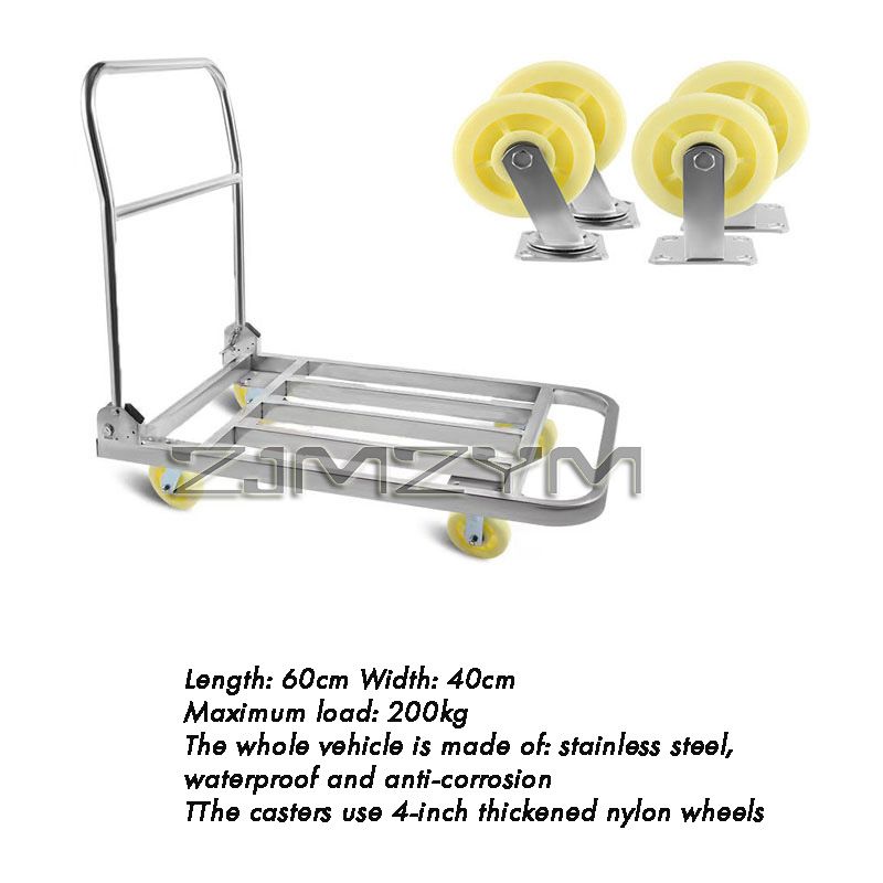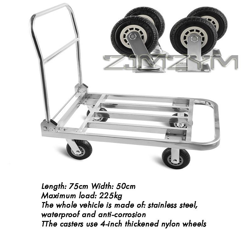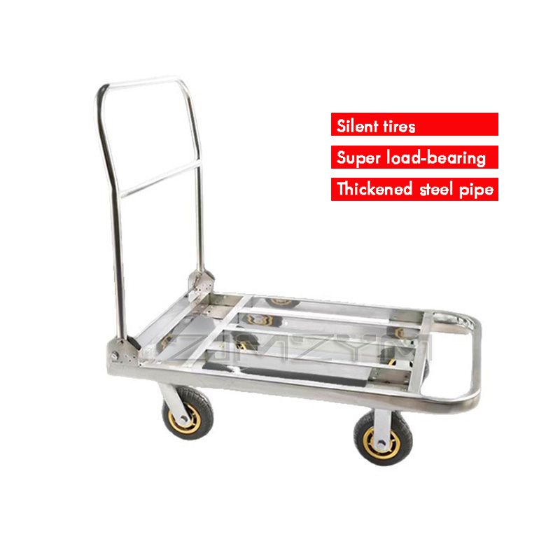 Trolley Stainless Steel Flatbed Cart, Folding Square Tube Moving Truck Pull Goods Four-wheel Heavy-duty Large Trailer