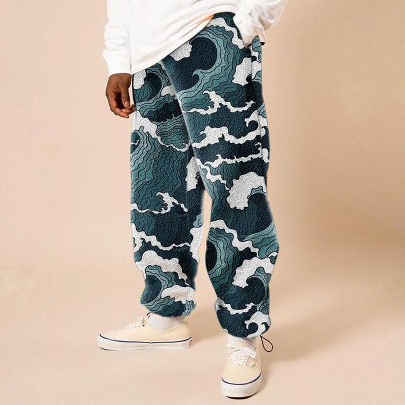 Trousers Loose Mid-waist Printed Fall For Men Blue S