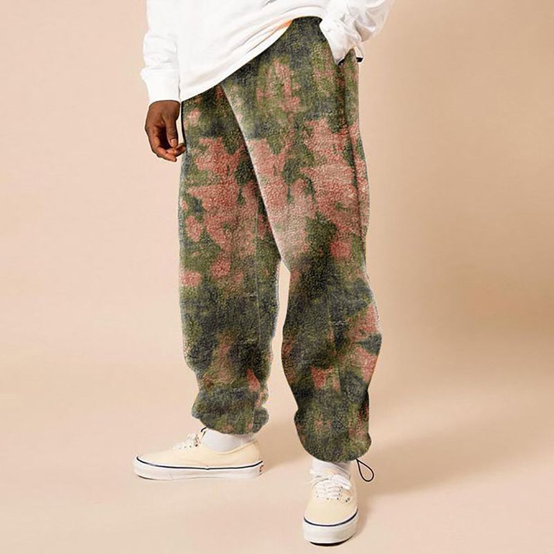Trousers Loose Mid-waist Printed Fall For Men Green XL