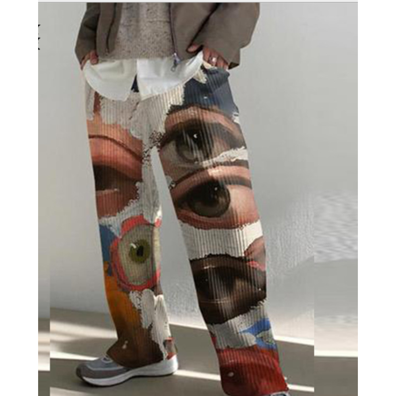 Trousers Loose Mid-waist Printed Fall For Men White 2XL
