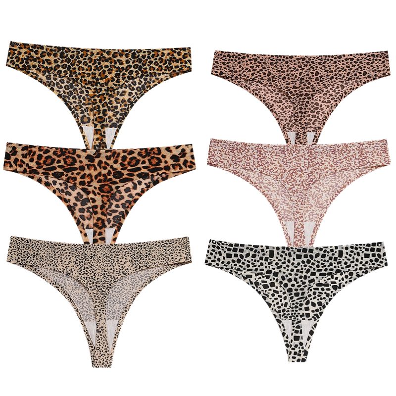 TrowBridge 6PCS/Set Women's Panties Fashion Leopard Thongs Woman Seamless Underwear Sexy Lingerie Soft Cozy G-Strings Hot T-Back