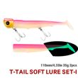 TSURINOYA 110mm 35g Long Casting Jig Head T Tail Soft Lure Set 2pcs Tail Flounder Seabass Fishing Lure Sinking Large Baits