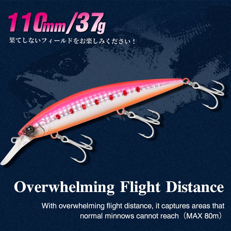 TSURINOYA 110mm 37g Heavy Weight Sea Fishing Lure Max 80m Ultra Long Casting Sinking Minnow WIZARD 110S Artificial Hard Baits