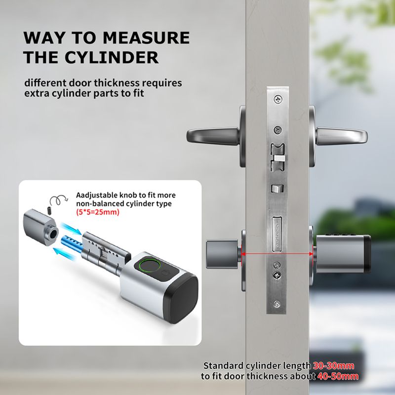Adjustable length cylinder lock, 99% of world doors to compliance; easy replacement of existing lock cylinder.