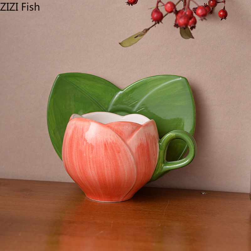 Tulip Flower Shaped Cup&saucer Dining Table Coffee Mug Delicate Porcelain Mugs Afternoon Tea Teacup Fruit Juice Container