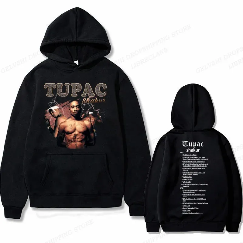 Tupac 2pac Graphic Hoodie Men Clothing Fashion Oversized Hip Hop Comfortable Autumn Winter Sweatshirt Male Casual Fleece Hoodies