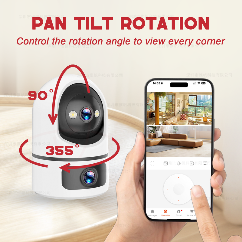 Pan/Tilt/Zoom: View 355° horizontal, 90° vertical rotation range through Mobile Phone, which cover more spaces and reduce blind area.
