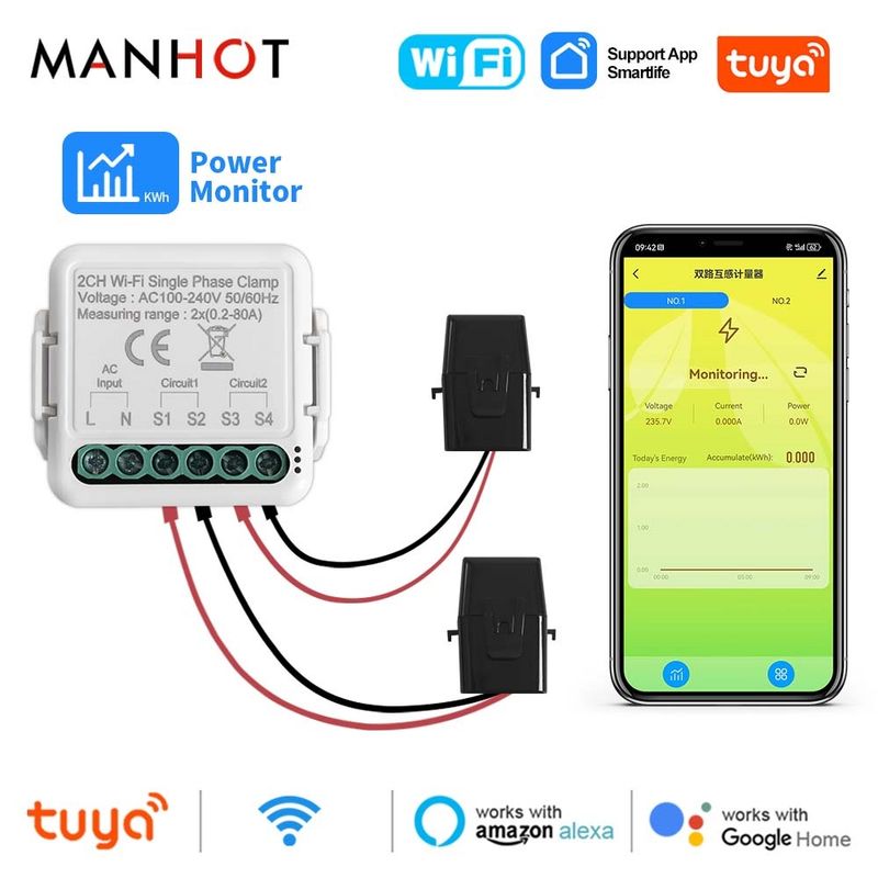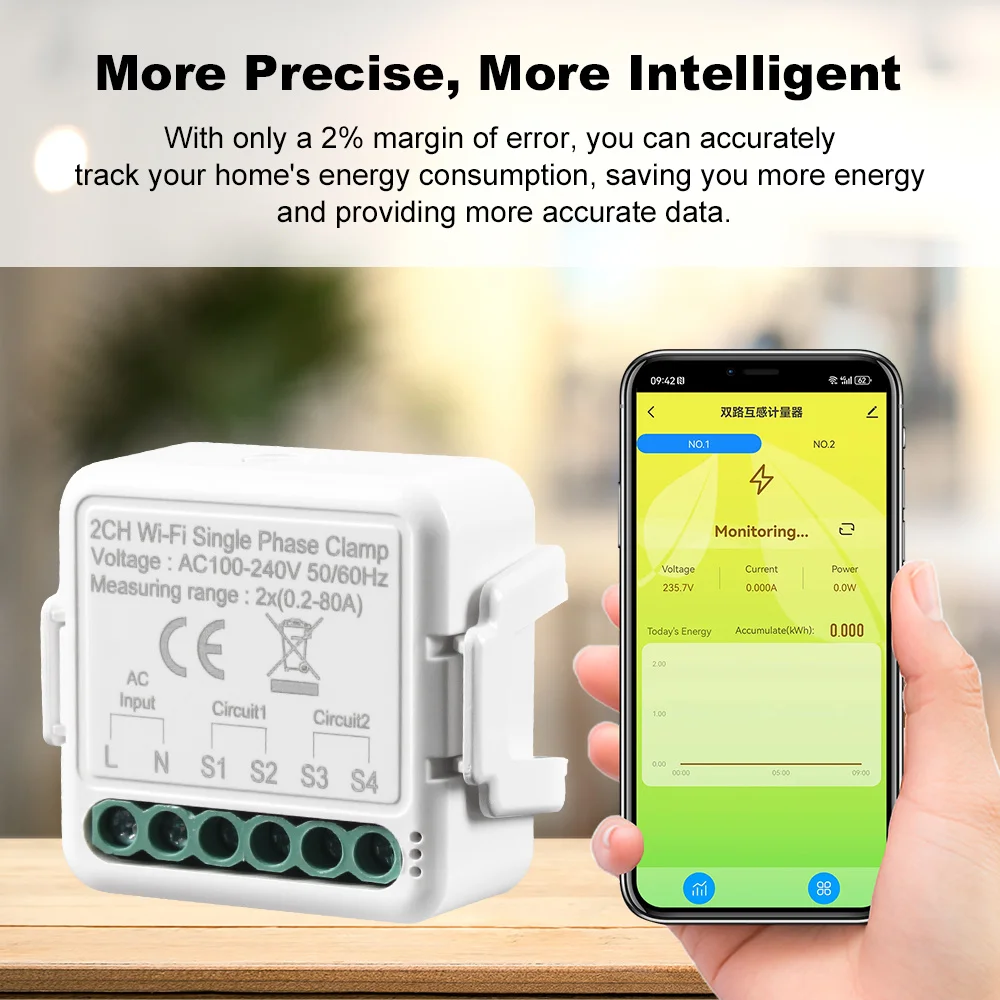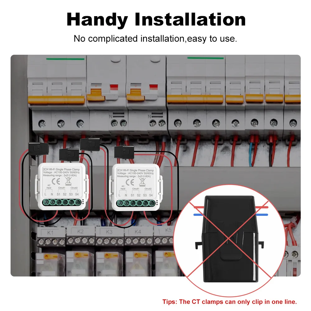 Tuya 80A WiFi smart Single Energy Meter with Current Transformer Clamp App Monitor Power Meter Product Electric Consumption